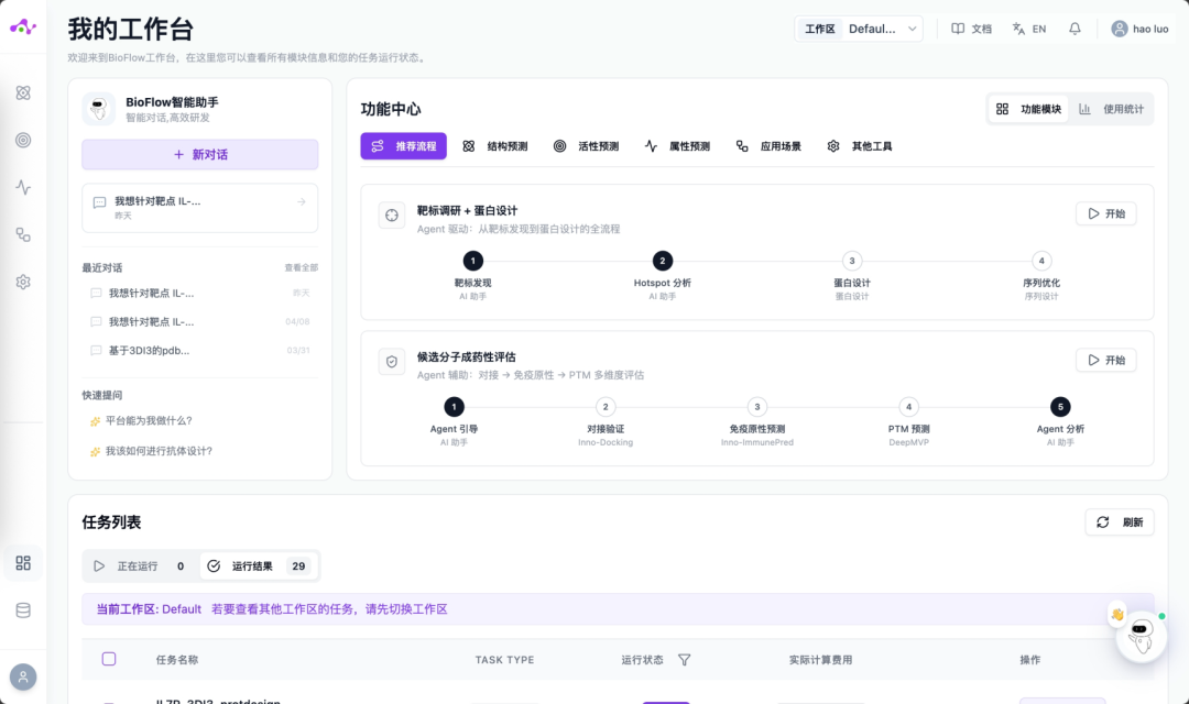 作为聚焦大分子药物设计的智能化核心平台,BioFlow深度融合AI大模型与结构生物学方法,实现了从结构解析到理性设计的全流程闭环,全面赋能抗体药物、蛋白工程与疫苗研发。