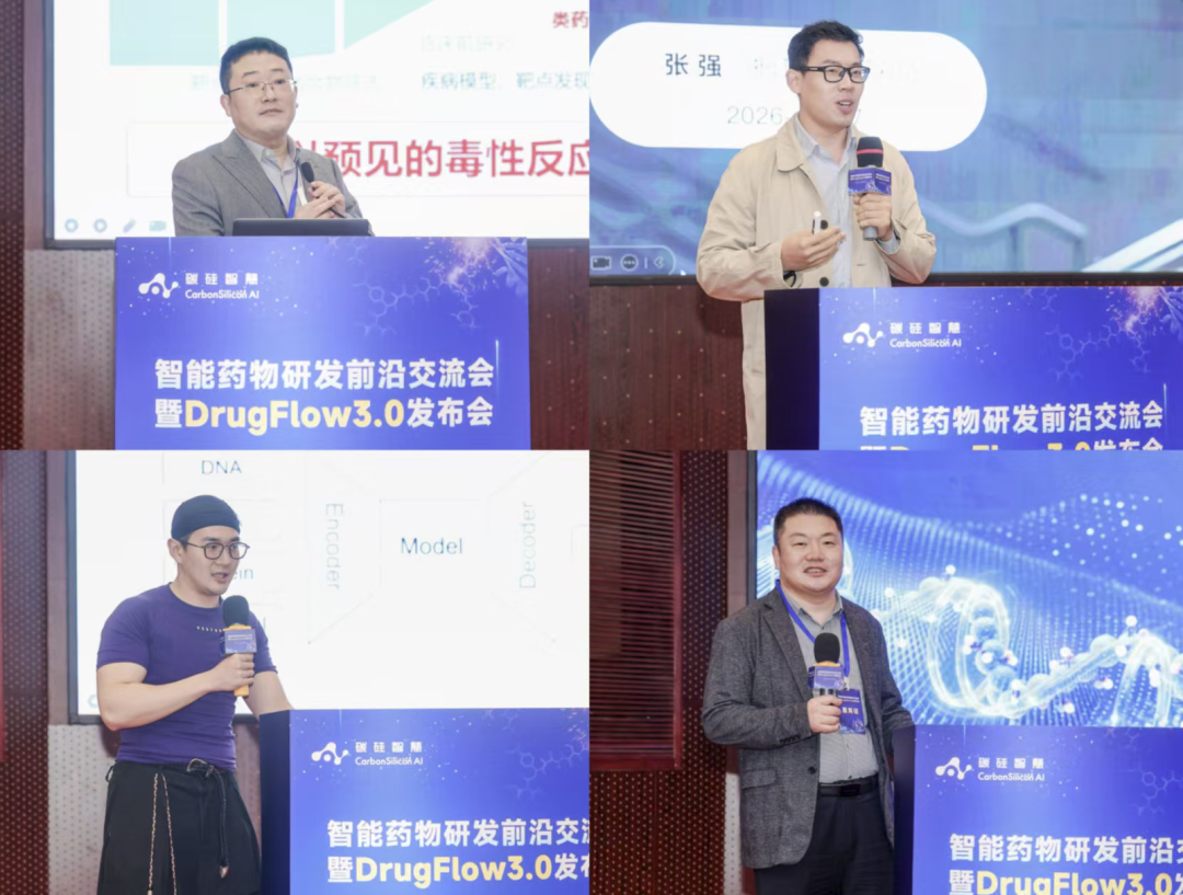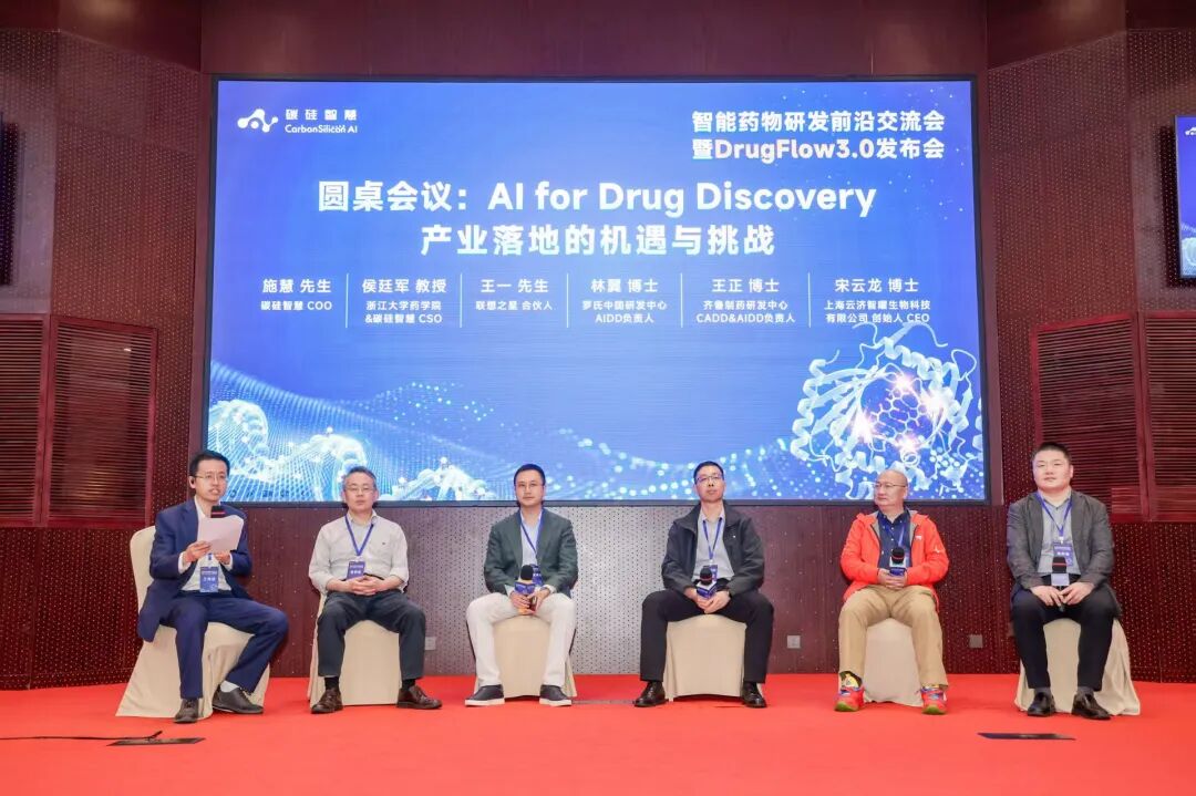 会议的后半程,在碳硅智慧COO施慧先生的主持下,多位重磅嘉宾围绕“AI for Drug Discovery:产业落地的机遇与挑战”展开了精彩的圆桌对话。罗氏中国研发中心AIDD负责人林翼博士分享了跨国药企的宏观视角,指出AI战略已上升至MNC总部高度,并看好AI助力大分子研发实现“弯道超车”。齐鲁制药研发中心CADD/AIDD负责人王正博士则结合企业内部构建“研发大脑”的实践,强调了企业拥抱AI亟需跨越认知壁垒,并表达了对多肽设计及大分子ADME模型的刚性需求。而上海云济智曜创始人兼CEO宋云龙博士从合作模式出发,结合自己多年的企业界研发经验,探讨了药企如何通过引入AI管线和软件工具快速构建自身研发能力。联想之星合伙人王一先生则从投资人视角深刻剖析了基座模型进化与AI Agent协作带来的商业模式变革。最后,侯廷军教授在交流中展望了新模态的发展,并指出随着底层世界模型的能力跃升,多糖及复杂生物大分子设计在未来1-3年内有望迎来重大突破,而Agent技术将极大解放计算化学家,使其聚焦于更高维度的创新决策。从基础算法的精雕细琢,到多模态产品矩阵的惊艳亮相,碳硅智慧用实际行动诠释了“智领药研,驱动未来”的深刻内涵。最后,碳硅智慧CEO何浩先生表示,碳硅智慧将持续迭代出更加卓越、懂药、务实的基础设施,作为创新药企业最坚实的后盾,希望能和广大合作伙伴一起,共同开启中国乃至全球生物医药的“大航海时代”。本次发布会吸引了近600位线上线下观众的热情参与,现场与云端互动频繁、反响热烈,充分彰显了业界对智能药学时代的殷切期盼。据悉,今年即将有使用DrugFlow平台设计的药物正式获批IND,这无疑是对碳硅智慧的模型和技术转化能力的最佳印证。展望未来趋势,接下来的AIDD产品,不仅是服务好每一位科学家,更要服务于高度智能化的AI Agent,引领人机协同的研发新纪元。如果您对本次发布的DrugFlow、BioFlow、Inno-FEP、SciGPT等产品感兴趣,欢迎关注DrugFlow微信公众号或碳硅智慧官网(carbonsiliconai.com)提交试用申请表单,我们将第一时间为您安排专属试用体验,携手探索AI制药的无限潜能!关于碳硅智慧(www.carbonsiliconai.com)