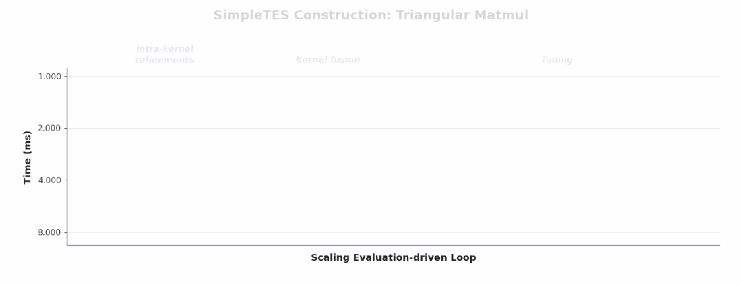 蛋白质结构预测的核心算子TriMul,SimpleTES写出来的Triton程序在H100上跑到1.122毫秒,击败了所有AI方法。