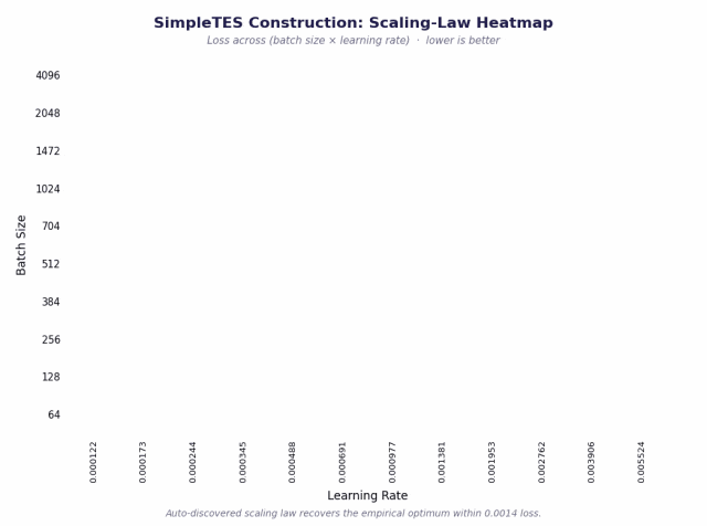 Scaling Law发现任务上,SimpleTES找到的规律比最佳人类推导的规律,外推拟合度提升了352%,而且发现的Scaling Law可以直接用来指导LLM预训练的超参数选择。