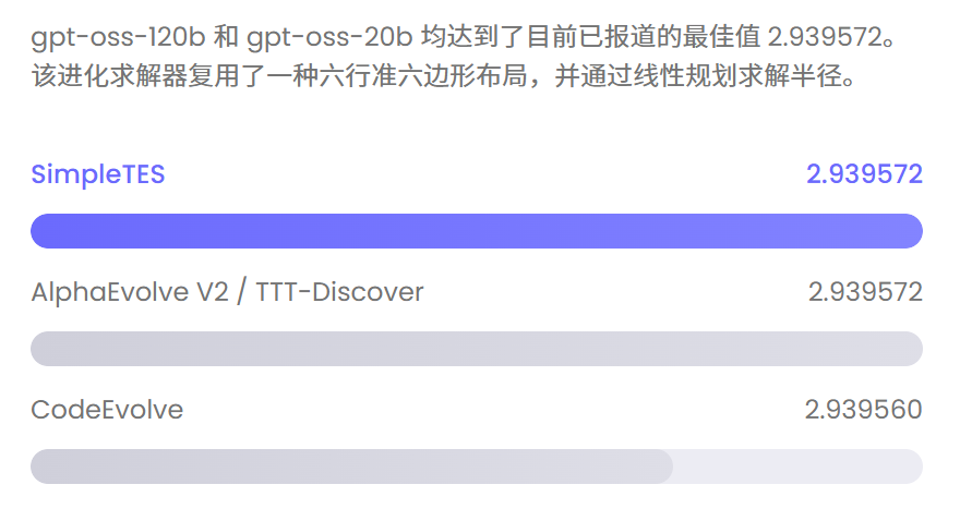 组合构造的Sum-Difference问题上,SimpleTES设计的新型构造超过最佳人类结果8.03%,超过Google的AlphaEvolve V2达2.05%。
