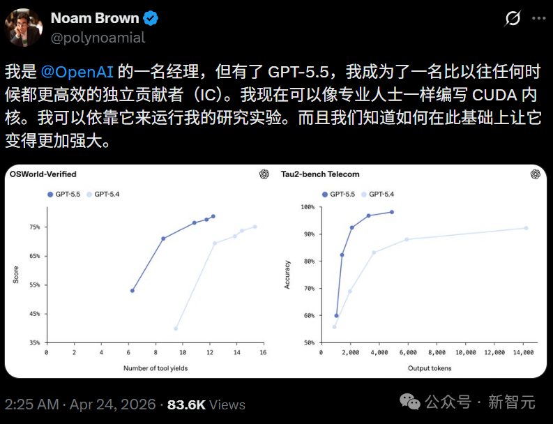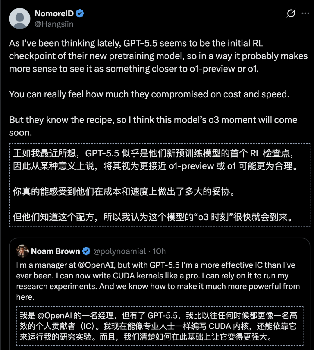 用他的话说,「有了GPT-5.5,我的IC效率比以往任何时候都高。我现在可以像专业人士一样编写CUDA kernels,可以依靠它来运行我的研究实验。」