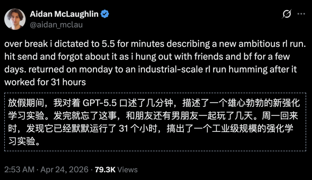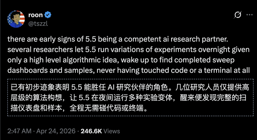 更狠的是,GPT-5.5的持续研究能力,已有迹象表明AI已经能胜任研究合作者——