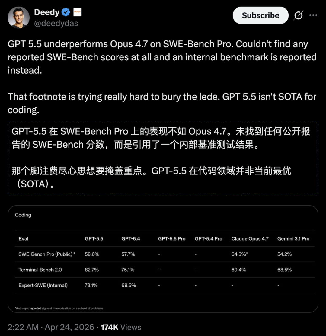 后端开发、复杂Bug定位、大型代码库理解,GPT-5.5在这些维度全面领先。