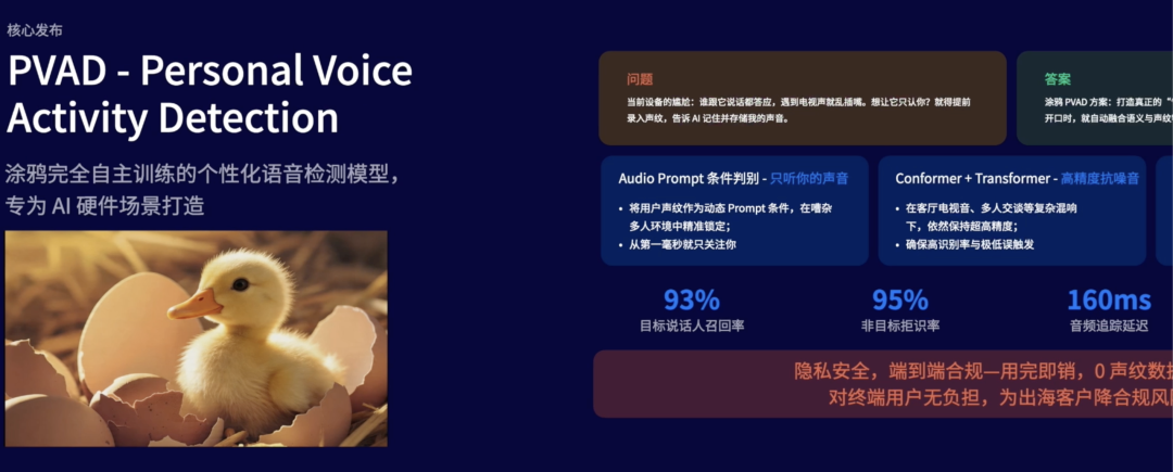 这次,涂鸦也发布了专为AI硬件落地场景打造的自训练的PVAD模型(Personal Voice Activity Detection),升级了Physical AI Foundation V2.8、Wukong AI 3.0、T-RTC实时通信网络、OmniMem V2.0长记忆系统等全栈开发者工具。