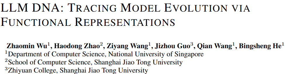 面对这一问题,新加坡国立大学与上海交通大学联合团队提出了LLM DNA,尝试像研究生物演化一样,用功能行为表征刻画模型之间的「亲缘关系」。他们不仅从数学上定义了什么是 LLM DNA,还提出了一套无需训练的提取方法RepTrace,并在305个大模型上进行了验证。结果表明,这种「DNA」不仅能够识别模型之间的关系,还能进一步构建大模型的系统发育树。