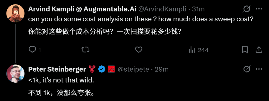 5000多个Issue的深度审查+关闭,总花费不到1000美元。按单个Issue算,成本大约0.2美元。