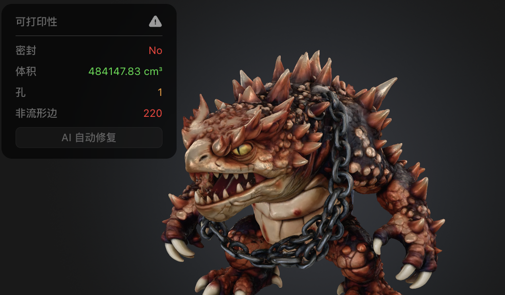 市面上很多AI 3D生成工具,产出的模型在屏幕上预览精致完美,实则根本无法顺利打印。