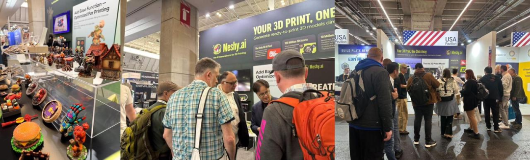 世界另一边,北美Rapid+TCT、Formnext等全球顶级3D打印行业大展,Meshy展台也始终人气高涨,收获全球行业目光与大量专业关注。