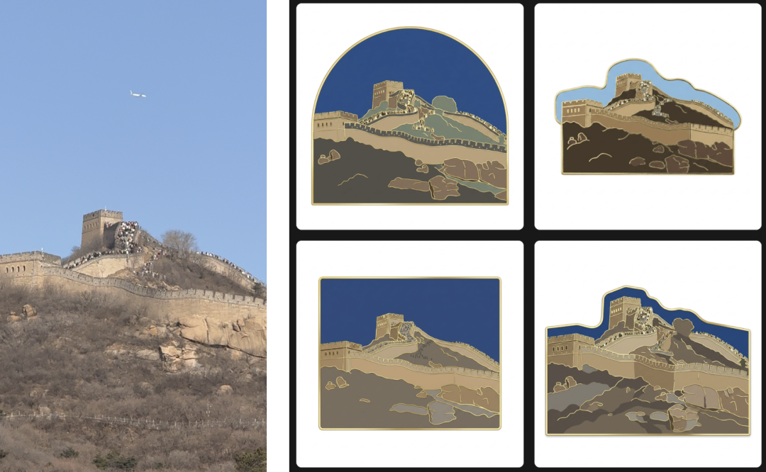 一次出四种方案,每种各有巧思,有忠实还原原图的,也有聚焦某一处细节做艺术化处理的,形状和构图都不重样。