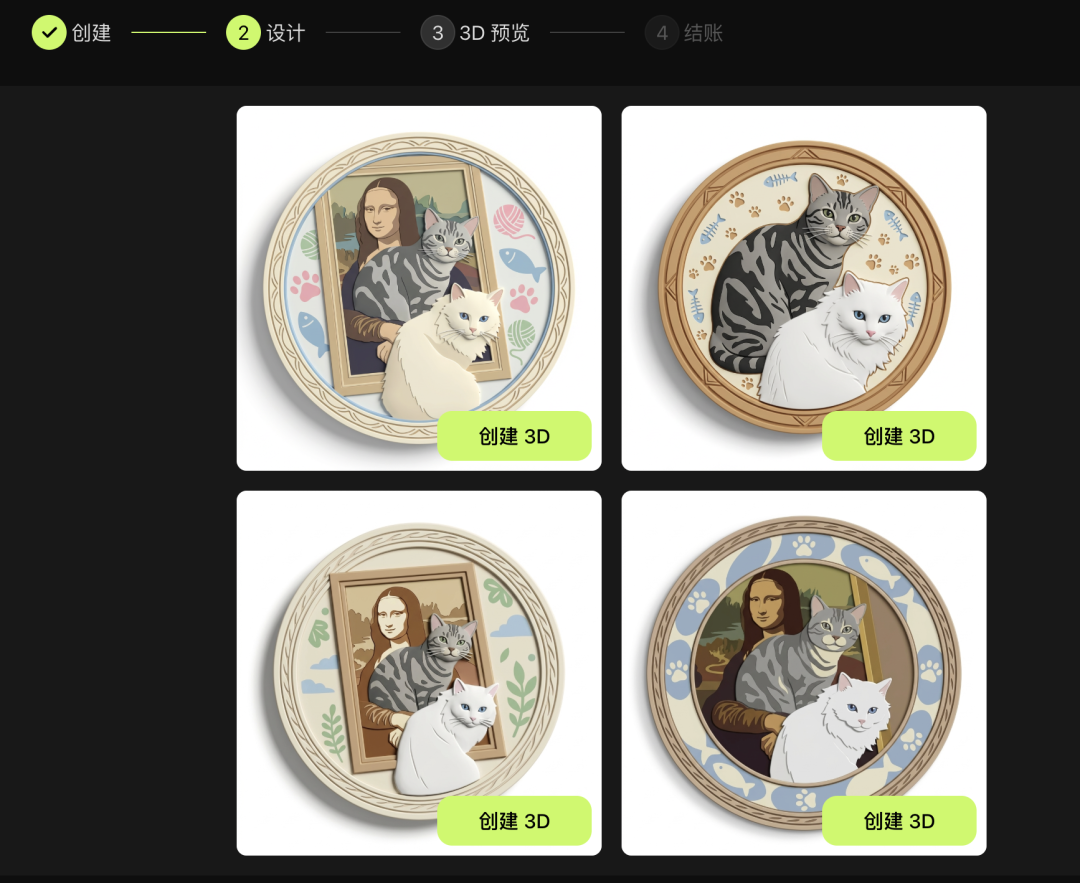 接下来,挑一款最顺眼的,点击“创建3D”,再等几十秒。