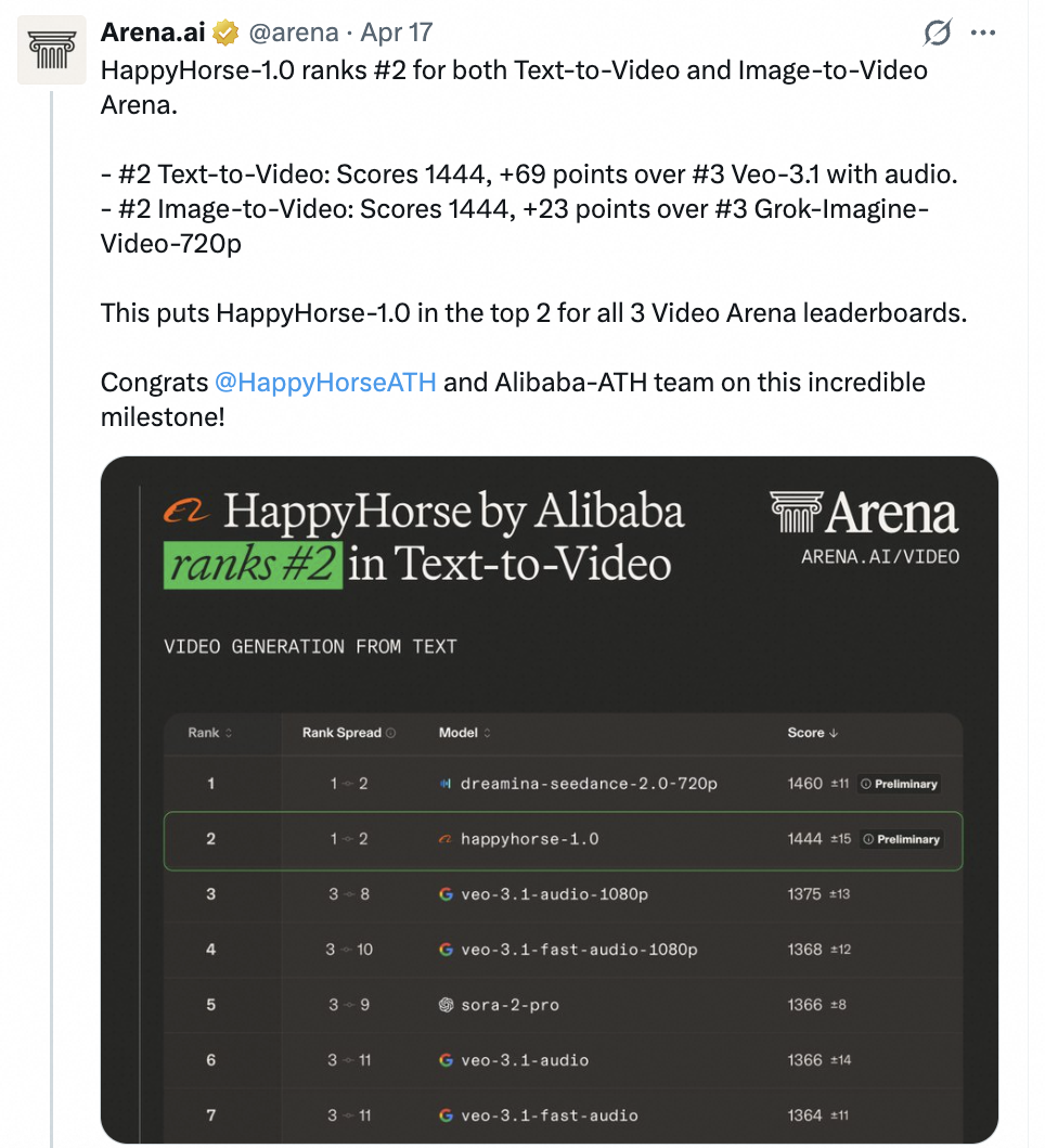 不同于别家高调的发布会路线,HappyHorse选择了「先拿成绩说话,再亮身份底牌」的冷启动策略。