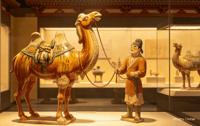 唐三彩骆驼眨眼,三星堆纵目面具嘴角微动,敦煌飞天从壁画中飘出,飘带蜿蜒如流水,身姿轻盈似无骨。