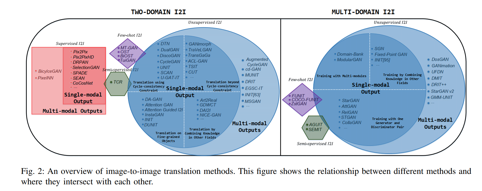 图像到图像转换(I2I)的目的是在保留内容表示的同时将图像从源域传输到目标域。由于I2I在许多计算机视觉和图像处理问题中的广泛应用,例如图像合成,分割,风格迁移,还原和姿势估计,因此I2I引起了越来越多的关注并取得了巨大进展。 在本文中,我们概述了近年来开发的I2I工作。我们将分析现有I2I工作的关键技术,并阐明社区取得的主要进展。此外,我们将详细阐述I2I对研究和行业界的影响,并指出相关领域中尚存的挑战。