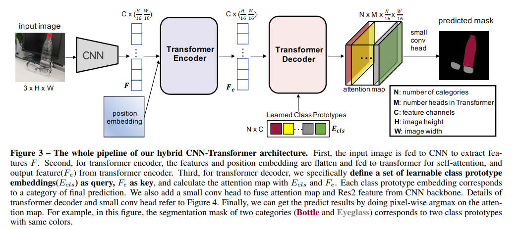 这项工作提出了一个新的细粒度透明物体分割数据集,称为Trans10K-v2,它扩展了第一个大规模透明物体分割数据集Trans10K-v1。与Trans10K-v1仅具有两个有限的类别不同,我们的新数据集具有许多吸引人的好处。 (1)它具有11种细粒度类别的透明对象,通常在人类家庭环境中出现,使其在实际应用中更加实用。 (2)Trans10K-v2给当前的高级分割方法带来了比以前的版本更多的挑战。此外,提出了一种新颖的基于transformer的分割pipeline,称为Trans2Seg。首先,与CNN的局部感受野相比,Trans2Seg的transformer编码器提供了全局感受野,与纯CNN架构相比,它具有出色的优势。其次,通过将语义分割公式化为字典查找问题,我们设计了一组可学习的原型作为Trans2Seg的Translator解码器的查询,其中每个原型都学习整个数据集中一个类别的统计信息。我们对20多种最新的语义分割方法进行了基准测试,证明Trans2Seg的性能明显优于所有基于CNN的方法,从而表明了该算法解决透明物体分割的潜在能力。