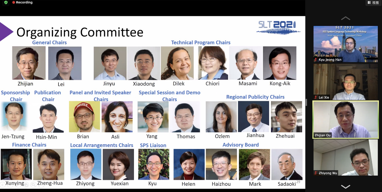 2021年1月19日至22日,第8届IEEE SLT(Spoken Language Technology)言语技术国际会议,成功在线举行,为期4天。本次会议由IEEE信号处理学会语音与语言处理技术委员会(IEEE SLTC)主办,清华大学、西北工业大学、清华大学天津电子信息研究院承办,北京智源人工智能研究院支持,清华大学欧智坚教授和西北工业大学谢磊教授担任大会主席,受到了全球各地语音语言技术领域人士的广泛关注和参与。SLT会议与IEEE SLTC主办的IEEE ASRU (Automatic Speech Recognition and Understanding)语音识别与理解国际会议隔年举办,是语音与语言处理学术圈的顶会,历史悠久,影响广泛。
