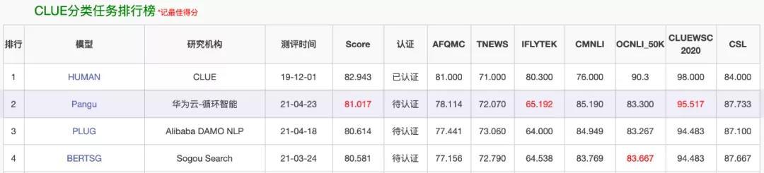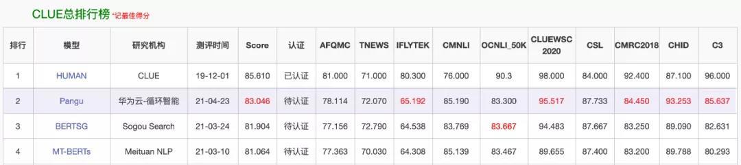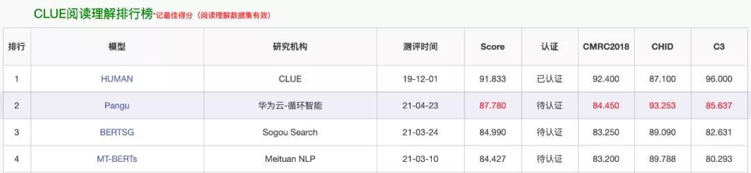 这次刷榜的,是一个叫「盘古」的 NLP 模型。在最近的 CLUE 榜单上,「盘古」在总榜、阅读理解排行榜和分类任务排行榜上都位列第一,总榜得分比第二名高出一个百分点。