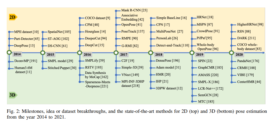 28页综述,共计232篇参考文献!本文对2014年以来的2D和3D人体姿态估计方法进行全面调研,并精选出里程碑的方法,系统总结各种方法的差异和联系,并介绍了数据集和评价指标。