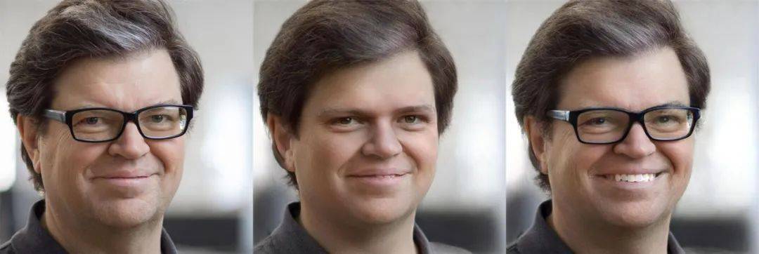 它的生成效果是这样的,生成更年轻和微笑的 Yann LeCun: