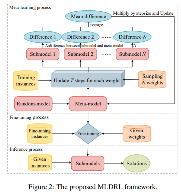 【推荐理由】深度强化学习 (DRL) 最近在解决复杂的组合优化问题方面取得了显著的成效。当这些问题扩展到多目标问题时,现有的 DRL 方法存在训练速度慢、很难灵活有效地适用及处理由目标权重分解确定的多个子问题。基于此,本文提出了一种简洁的基于元学习的 深度强化学习方法。它首先通过元学习训练元模型,并将子模型的直接训练过程修改为元模型的微调过程,从而大大减少了求解子问题所需的梯度更新步骤,增强了基于学习的方法的灵活性和通用性。具体来说,将注意力模型纳入了MOTSP的MLDRL框架中。再构建帕累托模型以解决多目标组合优化问题。通过多目标旅行商问题的计算实验表明该方法优于大多数基于学习和基于迭代的方法,而且在处理不同尺度的问题时具有良好的泛化能力。