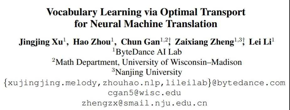 标题:Vocabulary Learning via Optimal Transport for Neural Machine Translation