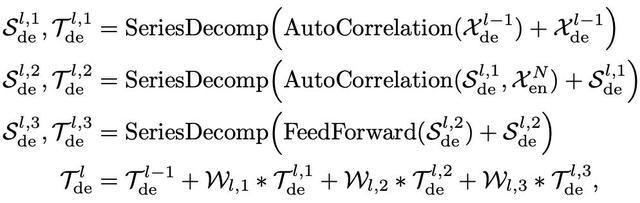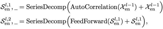 编码器:通过上述分解单元,模型可以分离出周期项,。而基于这种周期性,进一步使用自相关机制(),聚合不同周期的相似子过程: