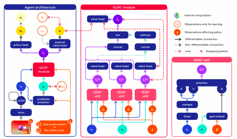 「元宇宙」XLand 解决了AI训练的数据问题,那么,接下来,用什么样的算法是合适的呢?研究人员发现,目标注意网络 (GOAT) 可以学习更通用的策略。