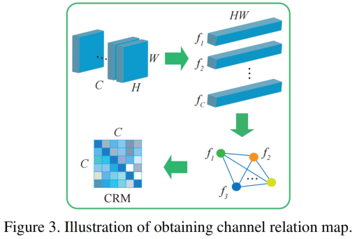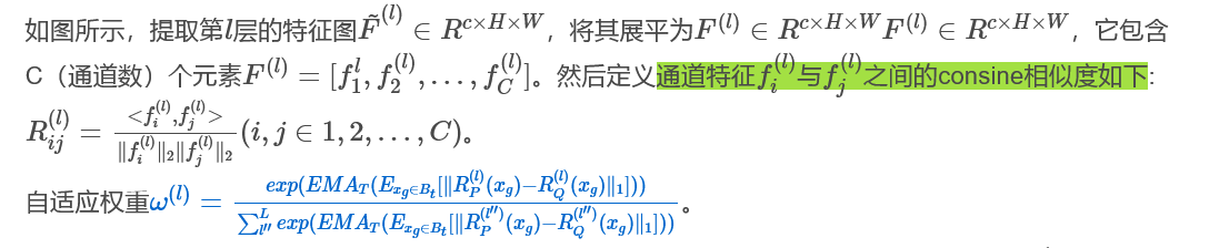 测量中间层差异的传统方法依赖于P(全精度模型)和Q(量化模型)的相关特征图,受利用中间特征图提高知识蒸馏性能的想法的启发,我们考虑不同通道之间特征图的相似关系,利用CRM捕获同一个模型的同一层中不同通道之间的关系。它既能消除不同数值跨度的特征图的影响,又能代表样本的高维特征。定义中间层内部差异为: