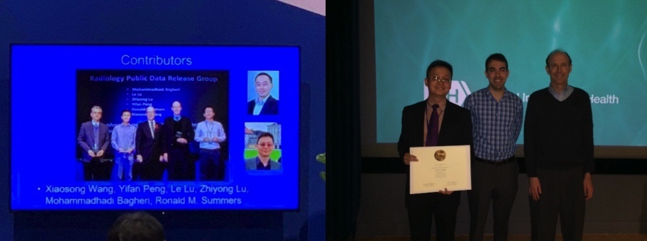 我2013年得了NIH医院的最佳导师奖,2015年就得了整个NIH的最佳导师奖。2017年我们用胸透片的工作也获得了医院的院长奖。这个奖项也是大概10年能得一次,所以我在NIH不到5年能拿到这个院长奖是比较幸运的。
