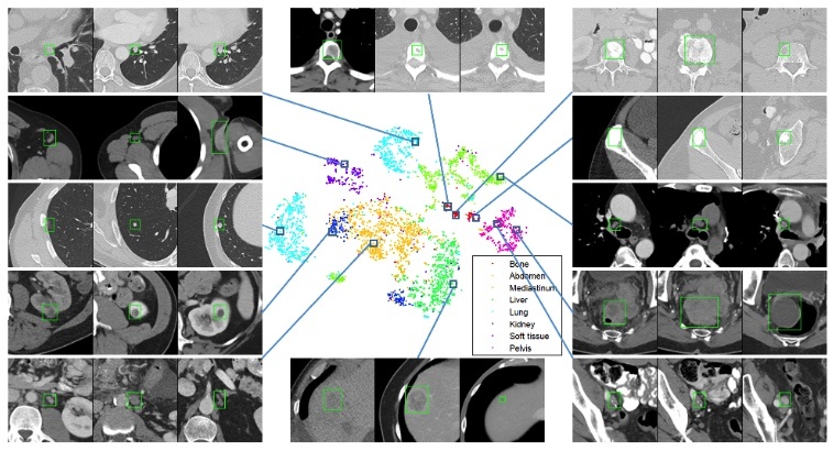 自监督算法提取的病灶特征在DeepLesion数据集上展现出良好的区分性