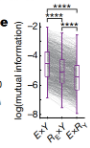 为了进一步检验编码的独立性,研究者计算了神经元激活水平与刺激空间(位置变量x认知变量)的互信息(mutual information)(图5),发现相比位置或认知变量随机的刺激空间,神经元的激活水平与真实刺激空间的互信息量都显著更高。说明神经元对空间位置和抽象认知变量的编码是同时进行且不独立的。