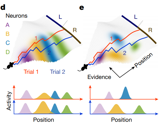 那么,如果任务中同时涉及了空间位置变化和抽象认知变量,海马1区中的神经元会如何表征呢?神经元对这两个变量的编码会是独立的么?空间变量和认知变量都能在神经元活动空间中形成有集合属性的认知地图么?来自美国普林斯顿大学的Carlos D. Brody和David W. Tank等学者,于2021年6月在Nature发表文章,介绍了他们关于神经元抽象知识表征的研究。