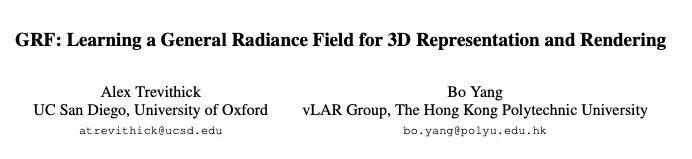 本文提出了结合多视角几何和注意力机制的通用神经辐射场 GRF,GRF的单个模型就可以推断出全新类别物体的高质量新视角合成图像。