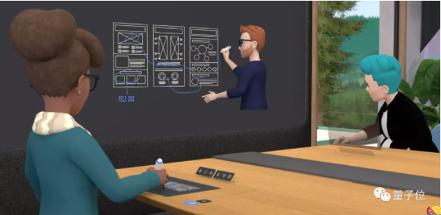 共享白板:每个人都可以在上面留下想法,当然,需要使用手势追踪设备Oculus Touch (Oculus的配套设备,其缠绕在手指上的塑料环上配有许多传感器。这些传感器可以感知你的手部动作)。内容可以一直保留,还可以导出到电脑。