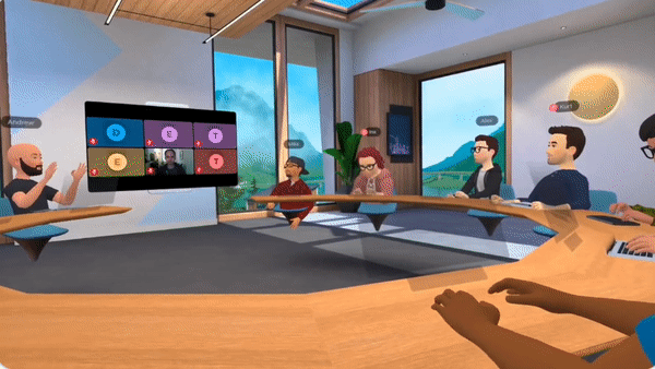 为此,Facebook最新推出了一个VR版的开会应用,每个人都能用自己的虚拟形象,和同事坐在虚拟桌前一起开会。