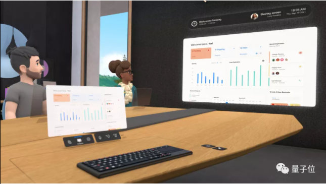 键盘追踪:为了方便大家在虚拟会议中打字,Horizon Workrooms可以将追踪你的键盘,生成虚拟形象。这对盲打不好使的人来说很有用。