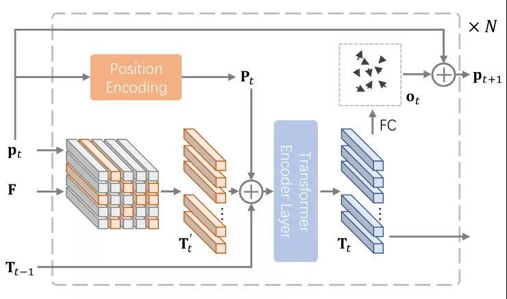Transformer这种具有强力全局编码能力的网络最近被应用于计算机视觉任务,例如ViT直接使用了一个Transformer来解决图像分类任务。为了处理二维图像数据,ViT简单地将图像分割,并映射成一个一维的序列。这种简单的分割使得图像固有的结构信息丢失,使得网络很难关注到重要的物体区域。为了解决这个问题,本文提出了一种迭代渐进采样策略来定位重要区域。具体来说,本文提出的progressive sampling模块,在每次迭代都会利用全局信息对采样位置进行更新,从而使得网络可以逐渐关注到感兴趣的信息。