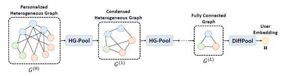 图8:从个性化异构图学习用户表示的迭代图池化过程