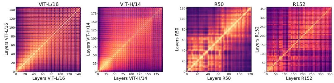 ViT 内层间表征结构和 ResNet 内层间表征结构有很大不同