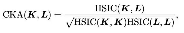CKA(Centered Kernel Alignment)12年就提出来了,但在神经网络表征相似度计算的推广还要多亏 Hinton 团队19年那篇 Similarity of neural network representations revisited.