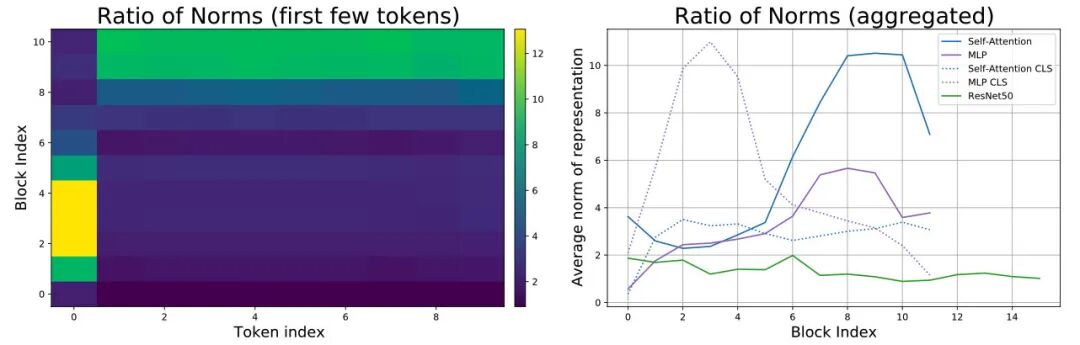 提到 ViT 模型很明显的有两个阶段,在前一个阶段残差连接主要保留 CLS token 的信息,之后阶段就主要是其他 token 的信息。这个之前看文本方面 Transformer 的分析好像也有类似结论。