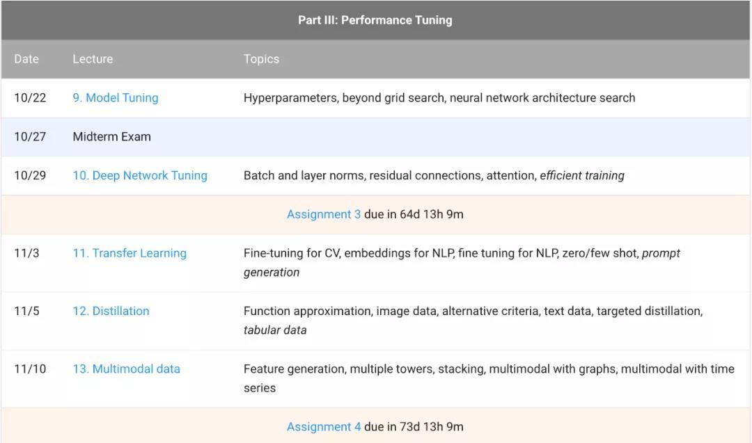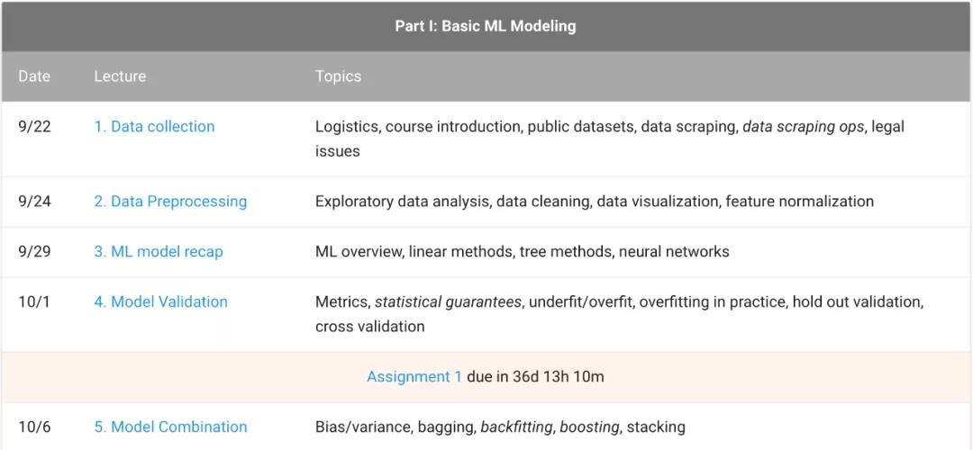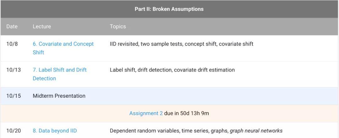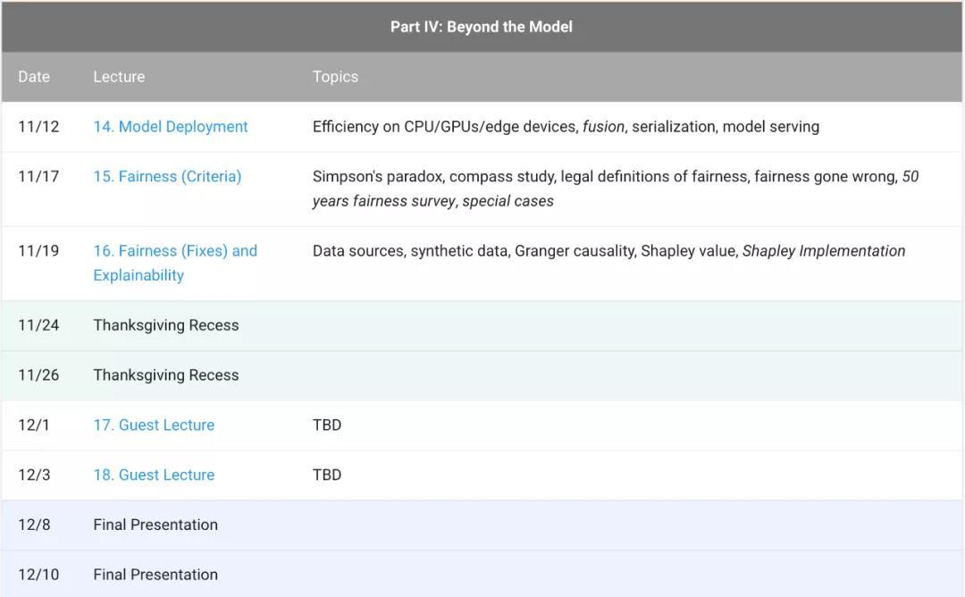 课程将分四部分,包括:1)数据收集和处理,模型融合和评估,2)处理实际数据中遇到的各种偏移,和有结构的数据(时序,图),3)自动调参、模型蒸馏、多模块融合,4)性能、公平性、因果推理。