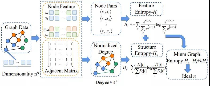 在本文中,作者从最小熵原理的角度重新审视 NEDS。随后,提出了一种基于最小图熵 (MinGE) 的算法去找最优嵌入维度。具体来说,MinGE 考虑了图上的特征熵和结构熵。特征熵假设相邻节点的嵌入相似。结构熵以归一化的度为基本单位,进一步衡量图的高阶结构。