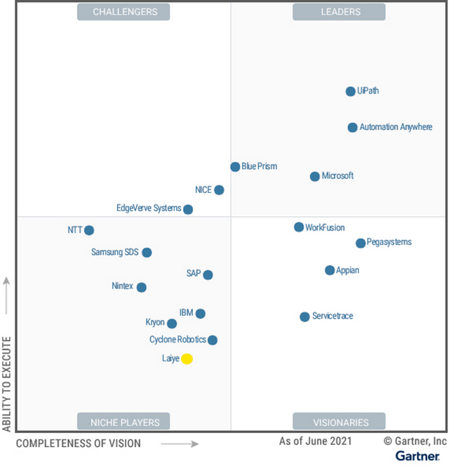 Gartner 2021年RPA魔力象限