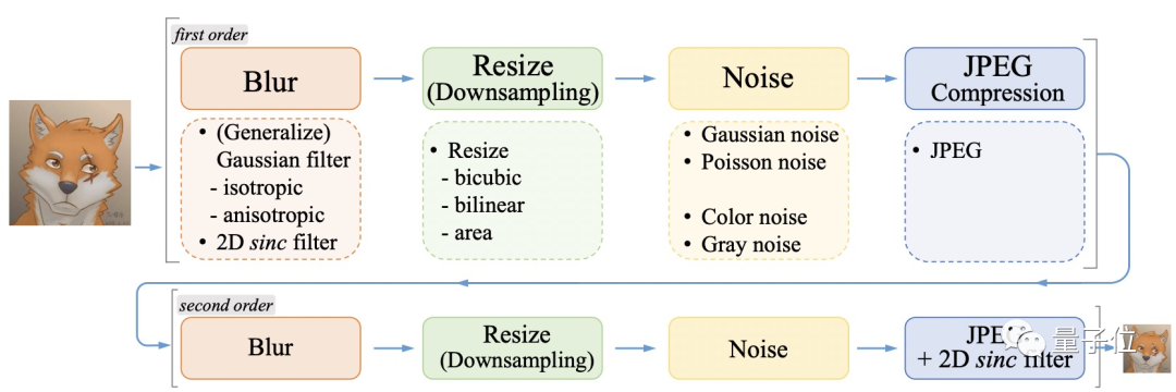 下图为Real-ESRGAN进行退化模拟的示意图: