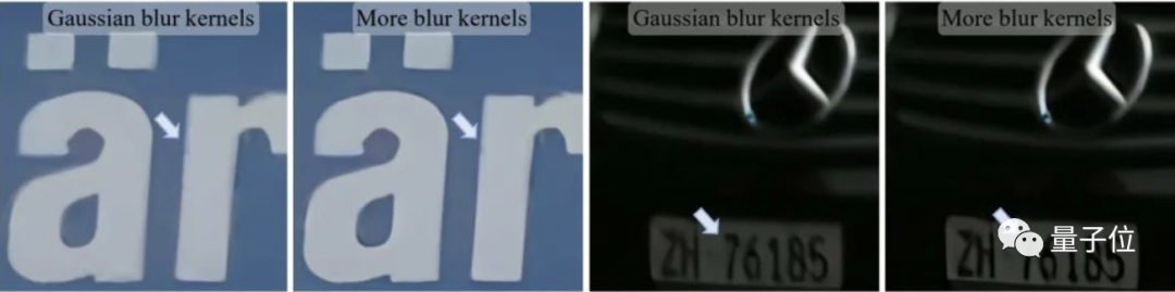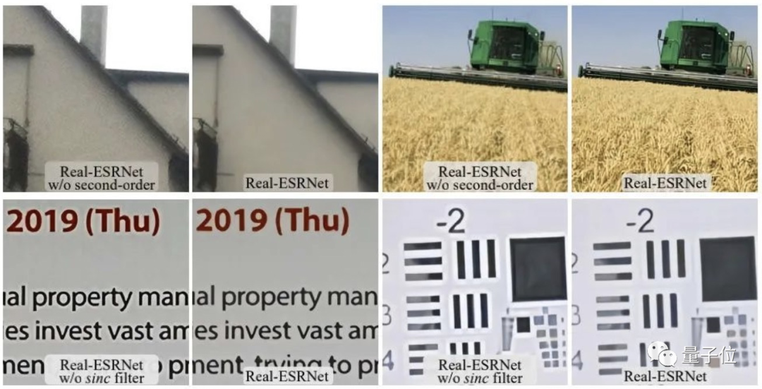 消融实验也发现采用二阶退化模型的效果最好、通过sinc滤波器的可以跟好地去除伪影、SN+UNet的组合取得了最佳的视觉效果、引入更多的模糊核,模型效果还可以进一步提升(分别对应下面四组图):