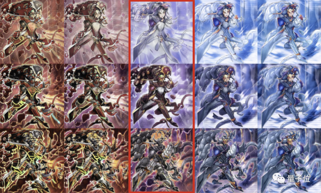 小哥在用游戏王数据集训练的StyleGAN2上做了同样的实验。