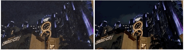 从实际效果来看,同一部手机,搭载V1芯片拍摄的夜景视频,在对比度还是流畅度(插帧效果)上都要更好: