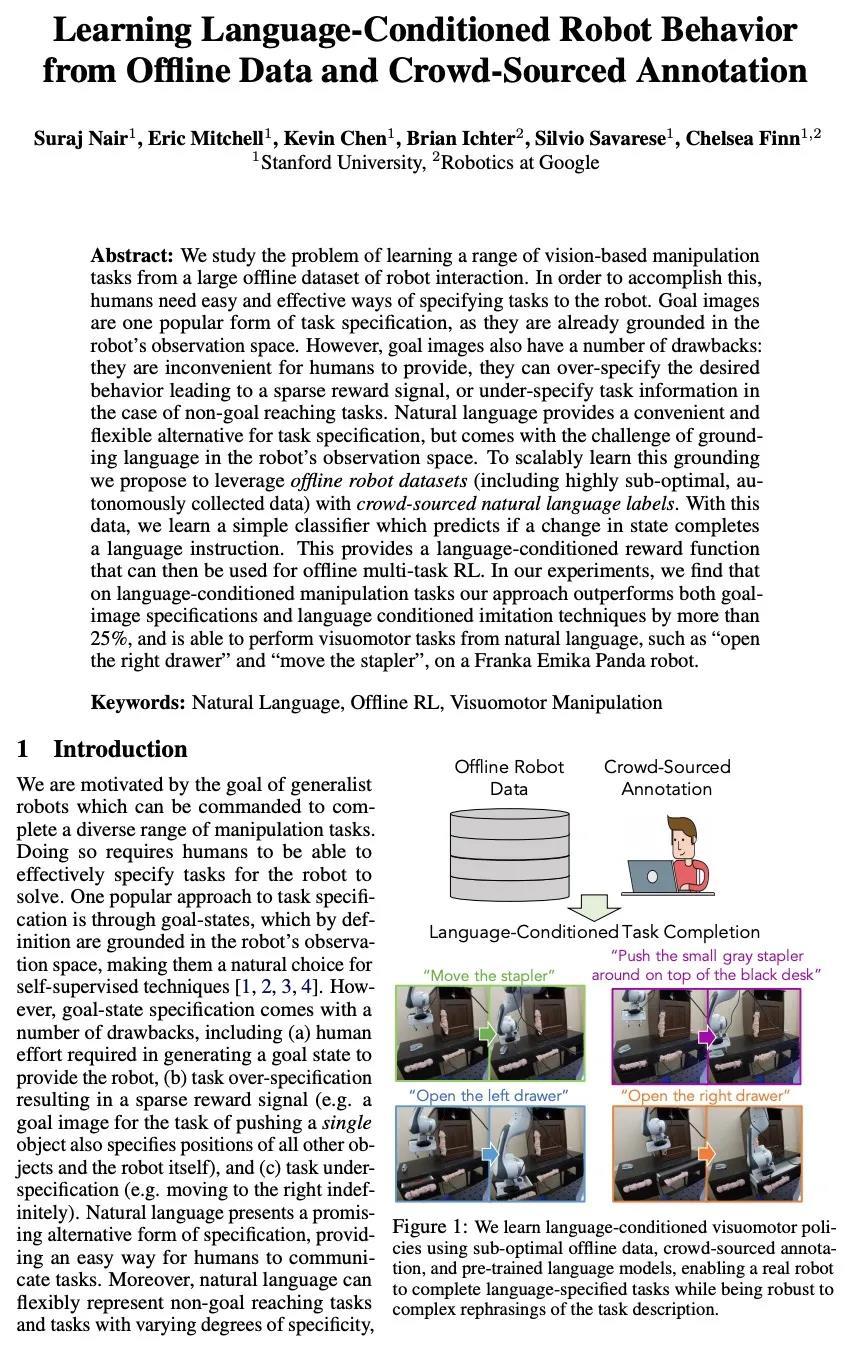 [RO] Learning Language-Conditioned Robot Behavior from Offline Data and Crowd-Sourced Annotation