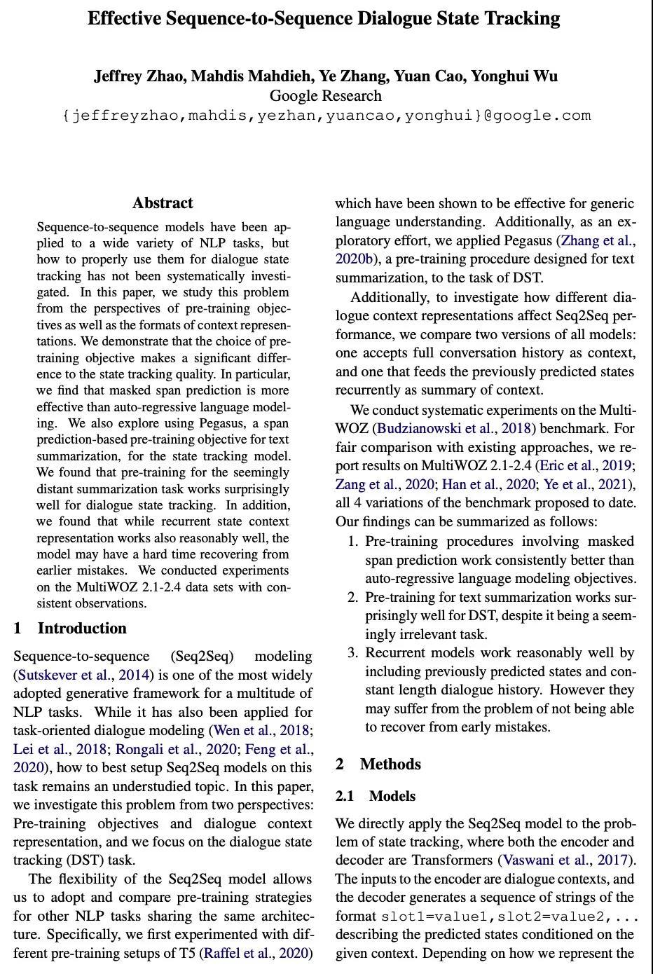 [CL] Effective Sequence-to-Sequence Dialogue State Tracking